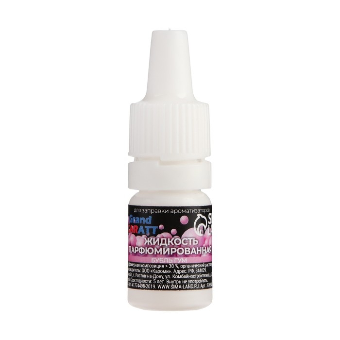 Жидкость парфюмированная Grand Caratt для заправки ароматизаторов с ароматом бабл гам - это идеальный выбор для тех, кто хочет наполнить свой автомобиль приятным и запоминающимся запахом. Эта жидкость объемом 5 мл специально создана для использования в автомобильных ароматизаторах и позволяет наслаждаться ароматом бабл гам на протяжении длительного времени.