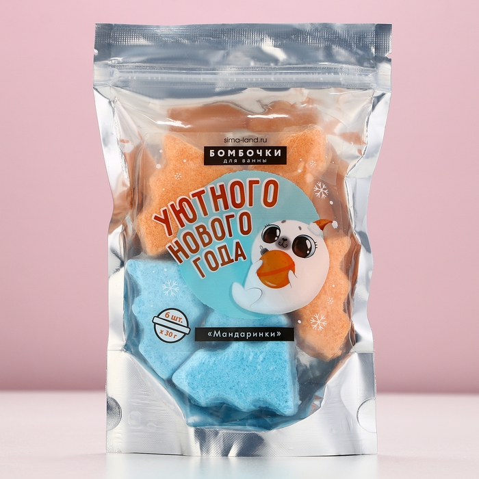Подарочный набор косметики «Уютного года!», бомбочки для ванны, 6 х 30 г, аромат мандарина, Новый Год