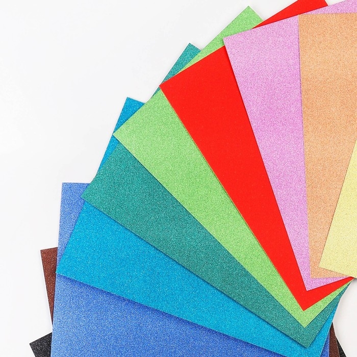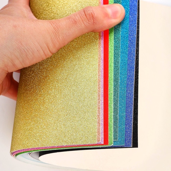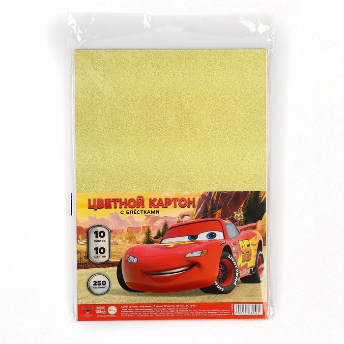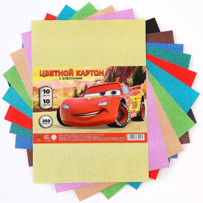 Картон цветной с блёстками, А4, 10 листов, 10 цветов, немелованный, односторонний, в пакете, 250 г/м², Тачки