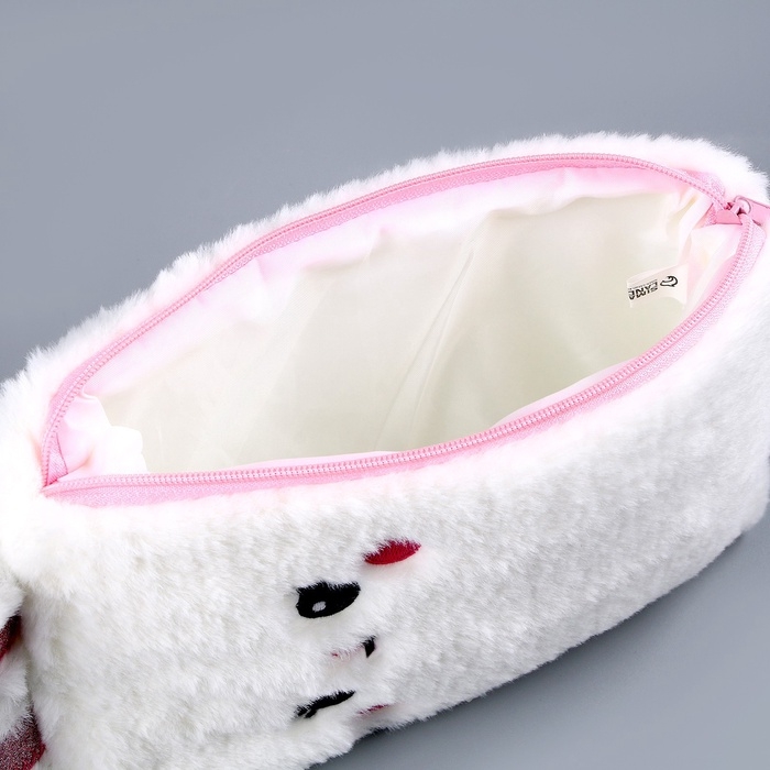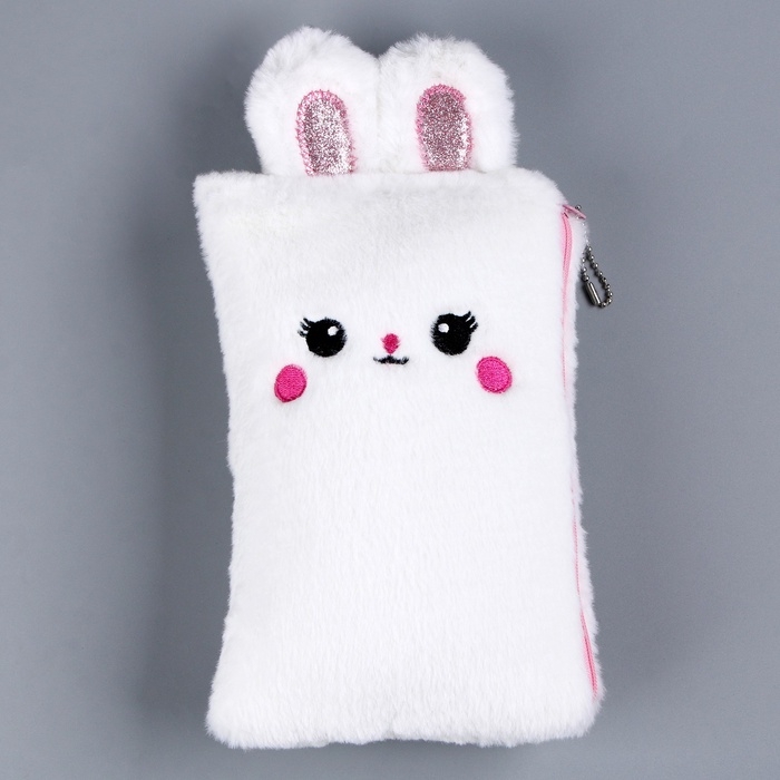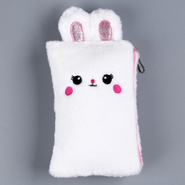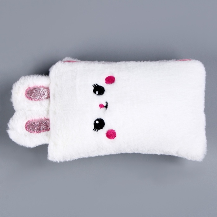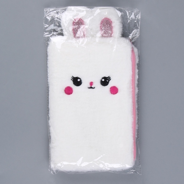 Пенал школьный мягкий «Зайчик», 21 × 13 см, плюш, белый цвет