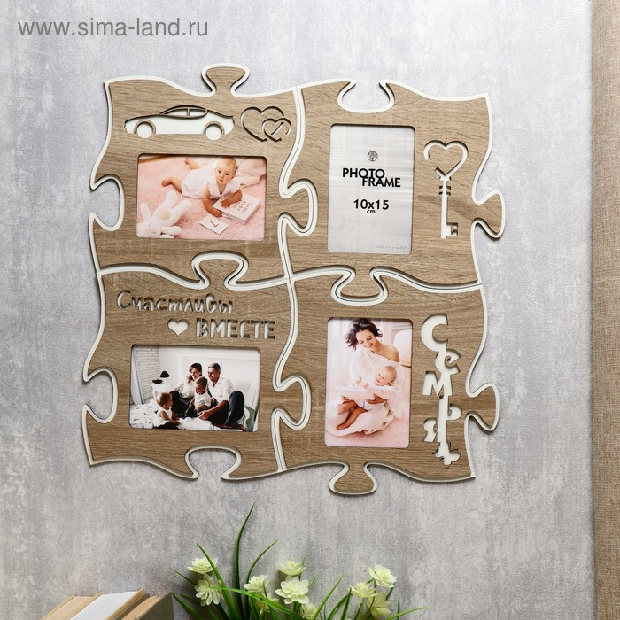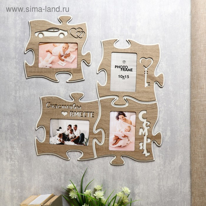 Фоторамка пазл ХДФ "Счастливы вместе" из 4 фрагментов 25х25 см
