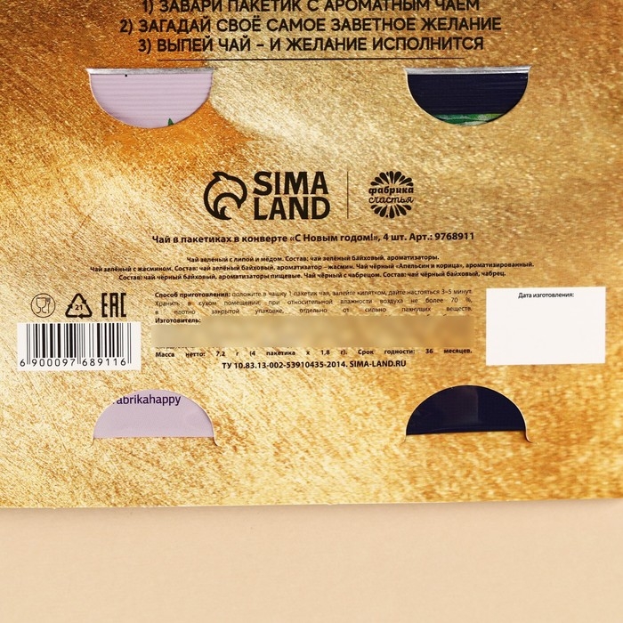 Чай в наборе «На счастье», 4 пакетика x 1,8 г.