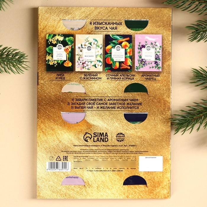 Новый год! Чай в пакетика «С Новым годом!» в конверте, 7,2 г (4 шт . х 1,8 г).