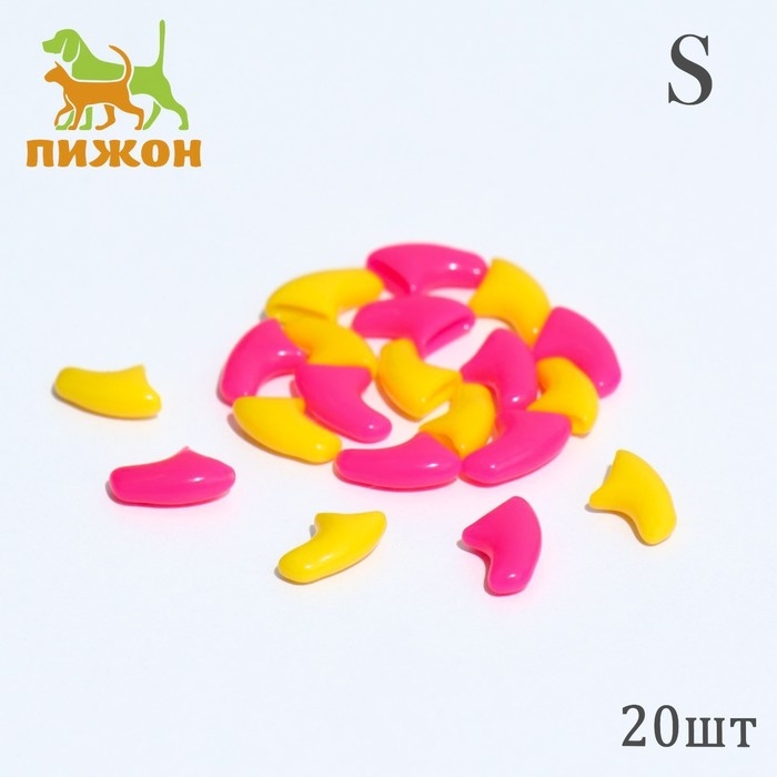 Когти накладные "Дуэт-Антицарапки" (20 шт), размер S, жёлтые-розовые