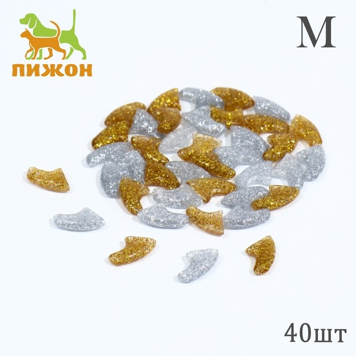 Когти накладные "Дуэт-Антицарапки" (40 шт), размер M, серебряные-золотые