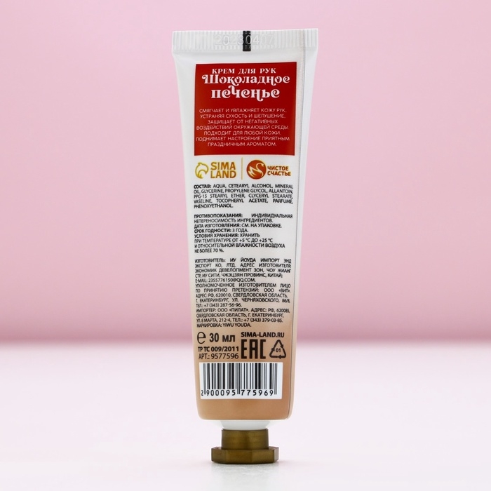 Крем для рук «Волшебного Нового Года!», 30 мл, аромат шоколадного печенья, ЧИСТОЕ СЧАСТЬЕ