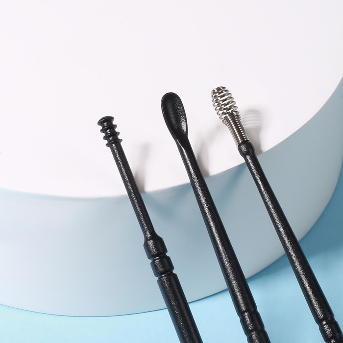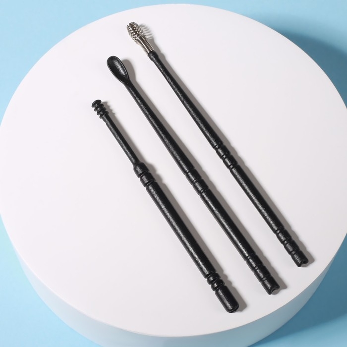 Набор для чистки ушей, 3 предмета, в пластиковом футляре, 10,5 × 3 × 1 см, цвет чёрный
