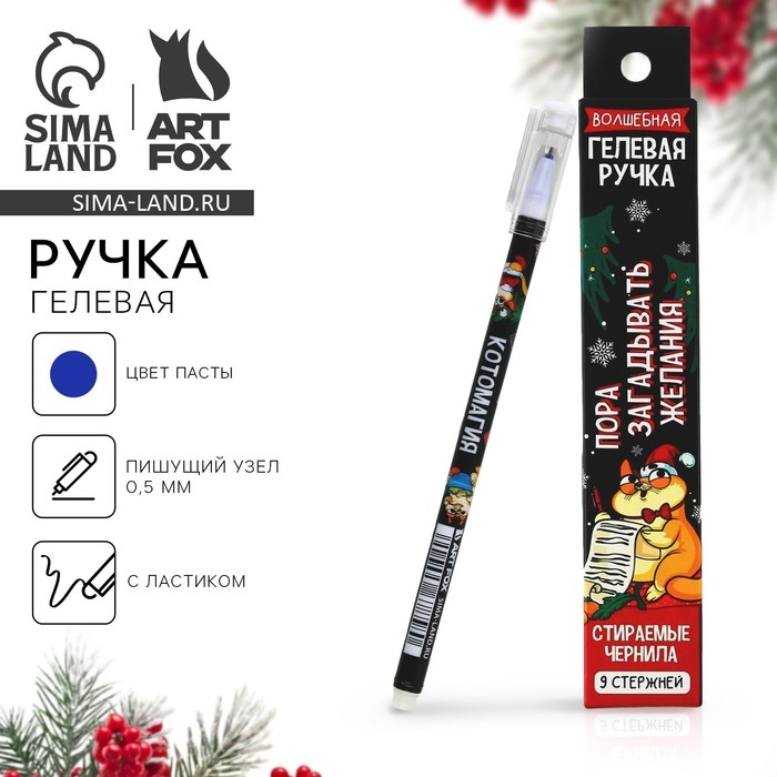 Новый год. Ручка пиши-стирай гелевая и стержни «Пора загадывать желания», синяя паста, 0.5 мм