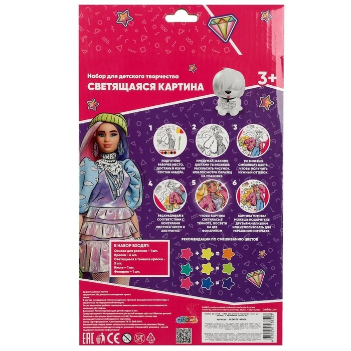 Набор творчества «Барби» картина светящаяся в темноте (неоновая раскраска)