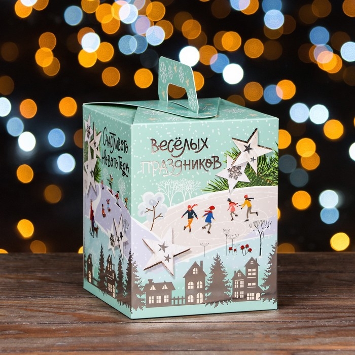 Подарочная коробка "Весёлых праздников", 12,4 х 13,4 х 15,6 см