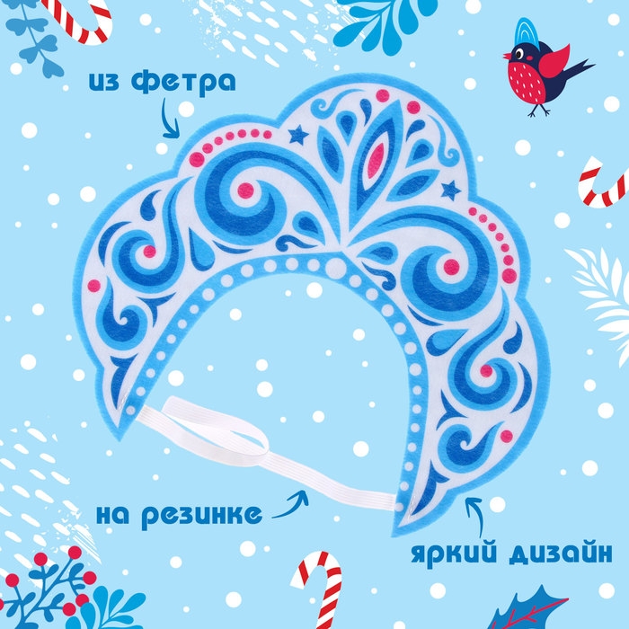 Новый год! Карнавальный кокошник «Зимняя королева» из фетра, с нанесением