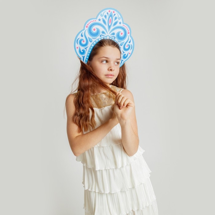 - Кокошник представлен в едином размере, который подходит для детей и взрослых.