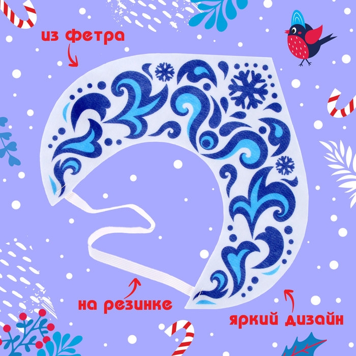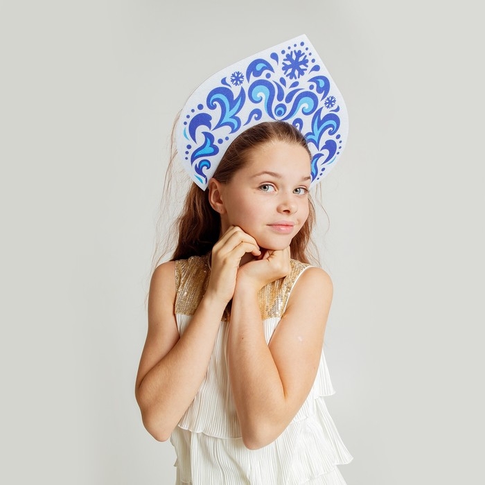 Новый год! Карнавальный кокошник «Зимняя королева» из фетра, с нанесением
