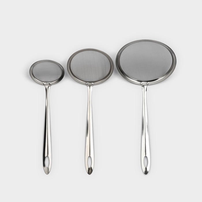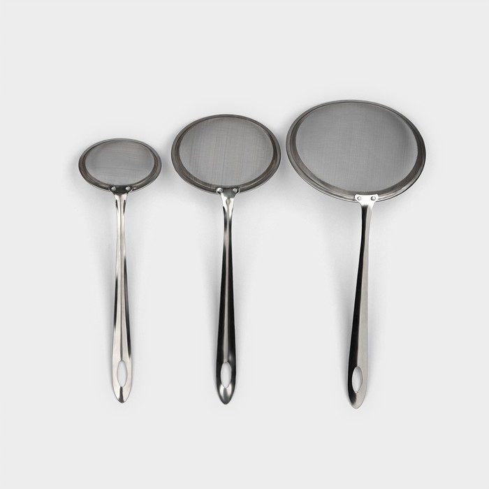 Сито набор Доляна «Металлик» для снятия пены, 3 штуки, цвет серебристый