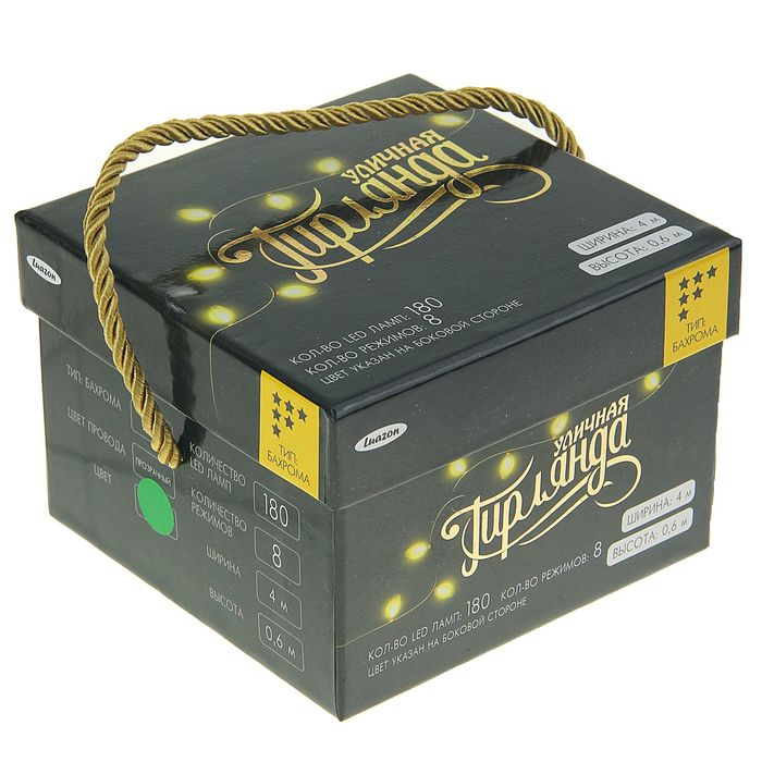 Гирлянда «Бахрома» 4 × 0.6 м, IP44, прозрачная нить, 180 LED, свечение зелёное, 8 режимов, 220 В