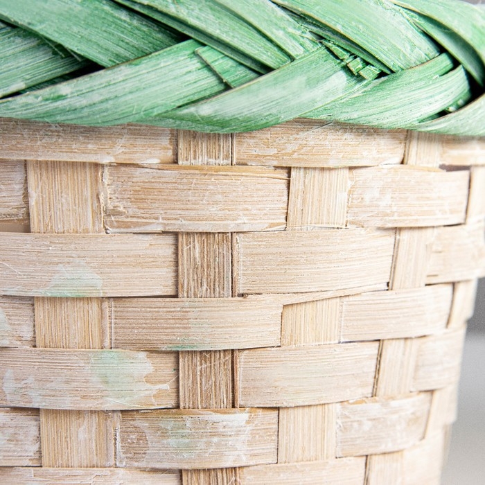 Корзина плетеная (бамбук), 17 х 9 х 30см, белая-зеленая