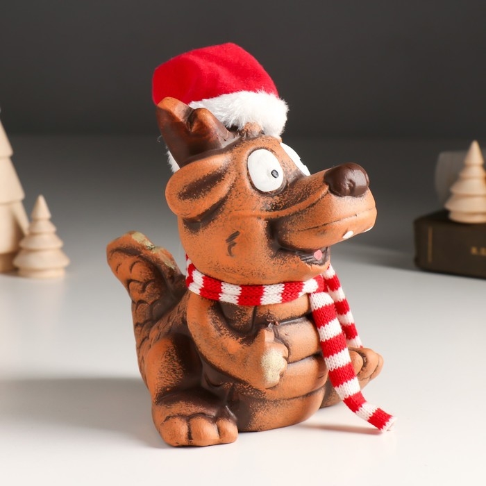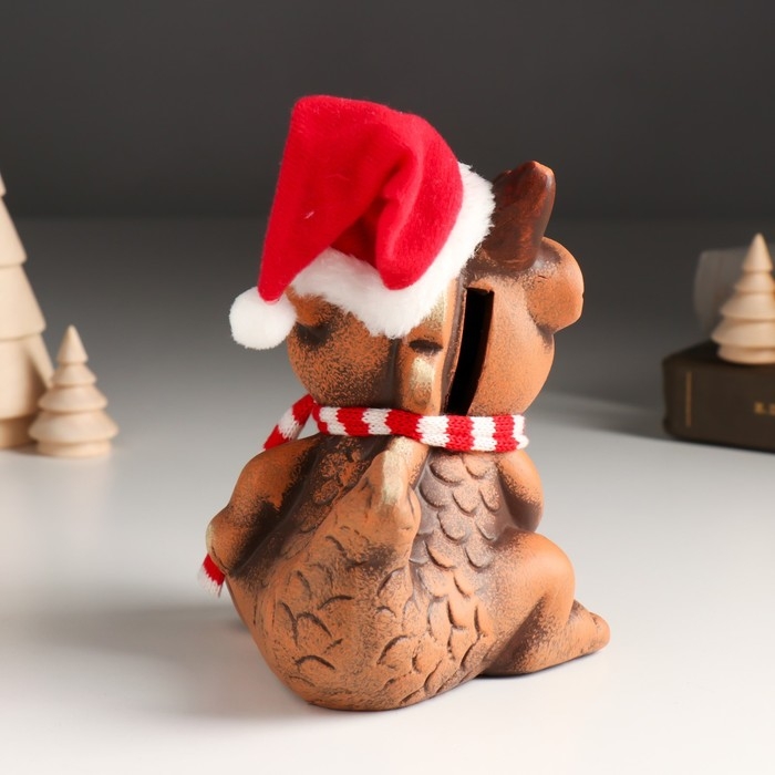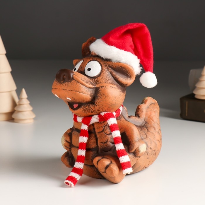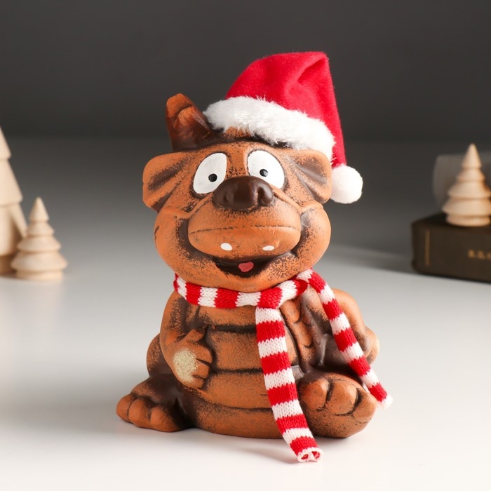 Копилка керамика "Глиняный дракон в шарфе и колпаке" 11х13,3х14,8 см