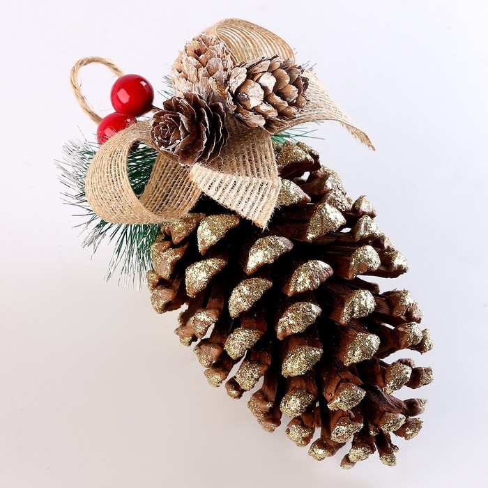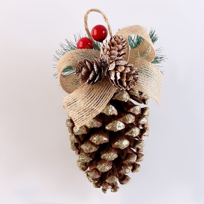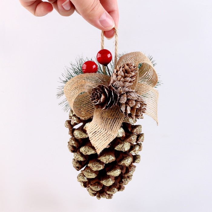 Новый год! Шишка декоративная «Золотоая с бантиком» 10 × 10 × 18 см