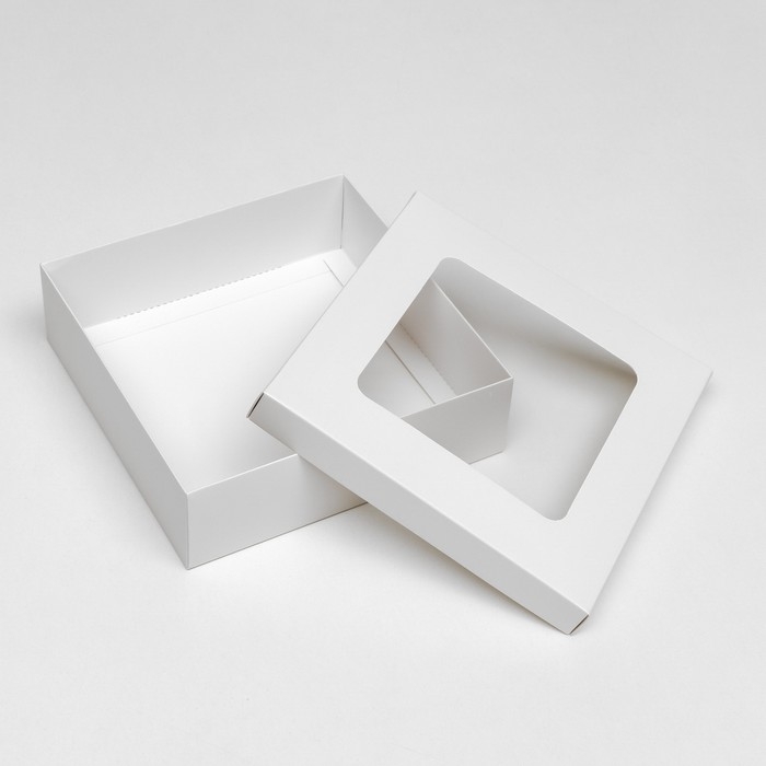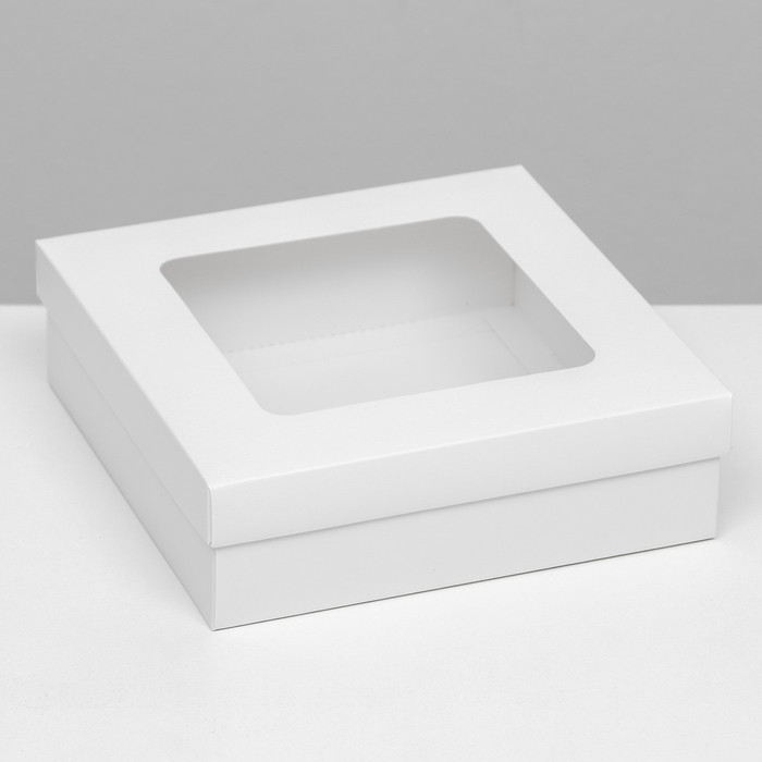 Коробка подарочная складная, упаковка, крышка-дно, с окном, белая, 20 х 20 х 6 см