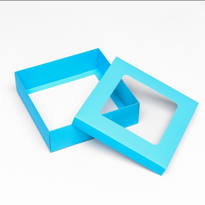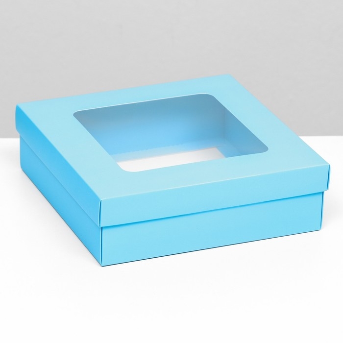 Коробка подарочная складная, упаковка, крышка-дно, бирюзовая, с окном 20 х 20 х 6 см