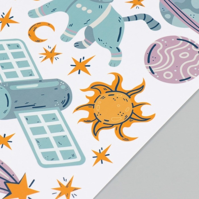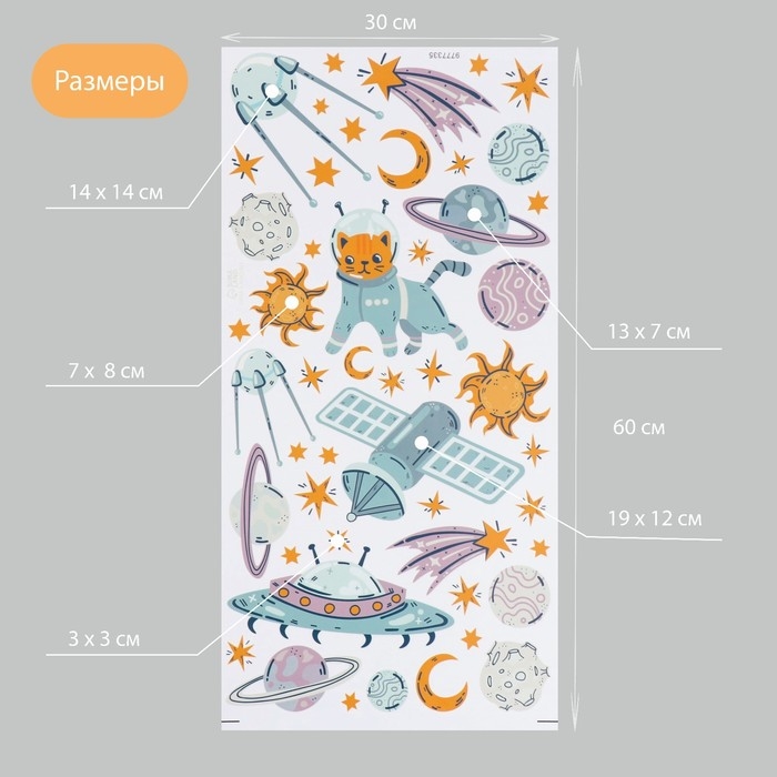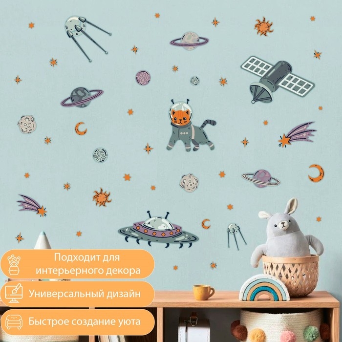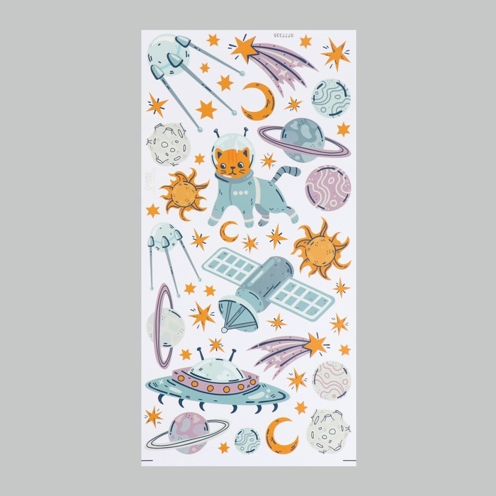 Наклейка интерьерная цветная "Кот в космосе" 30х60 см