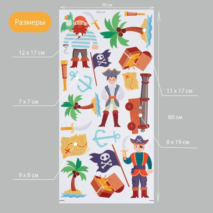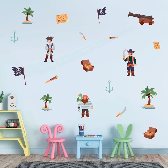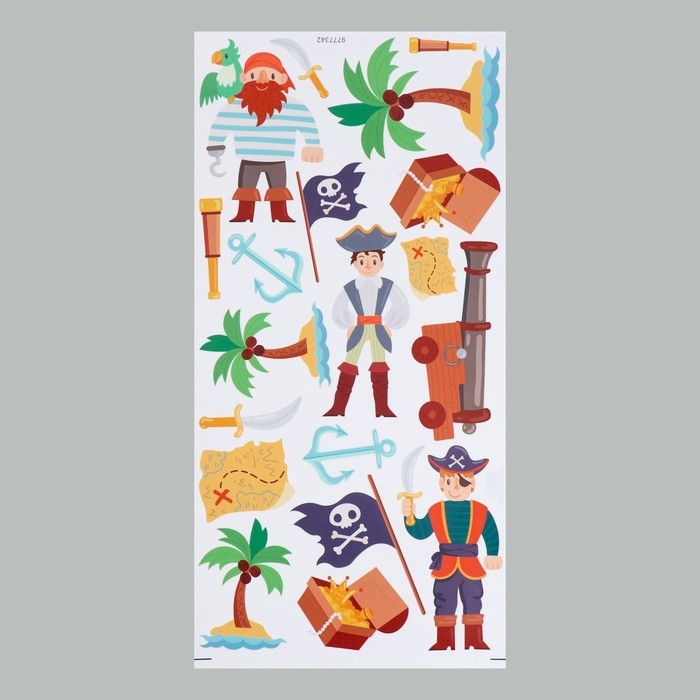 Наклейка интерьерная цветная "Пираты на острове" 30х60 см