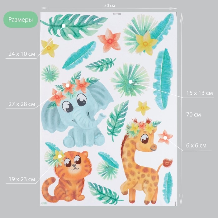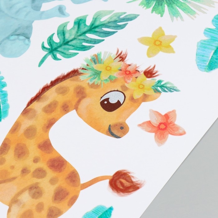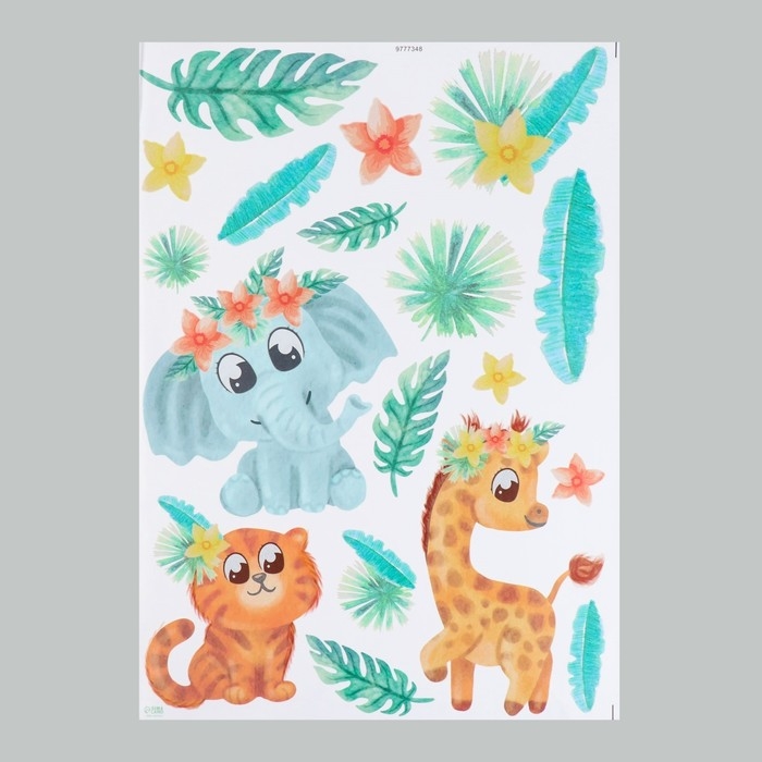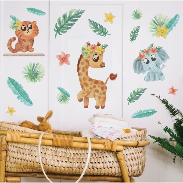 Наклейка интерьерная цветная "Зверята и экзотические цветы" 50х70 см