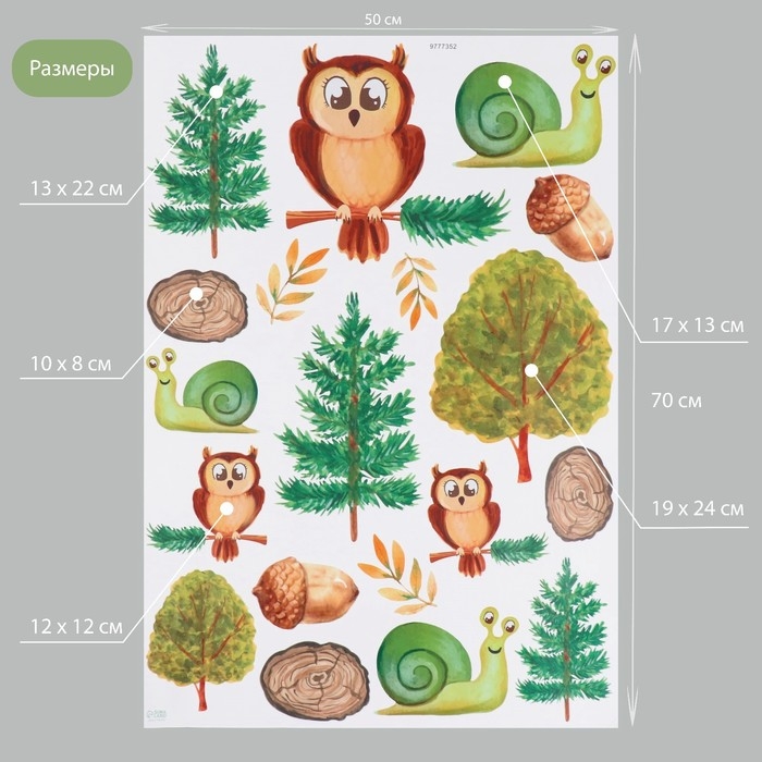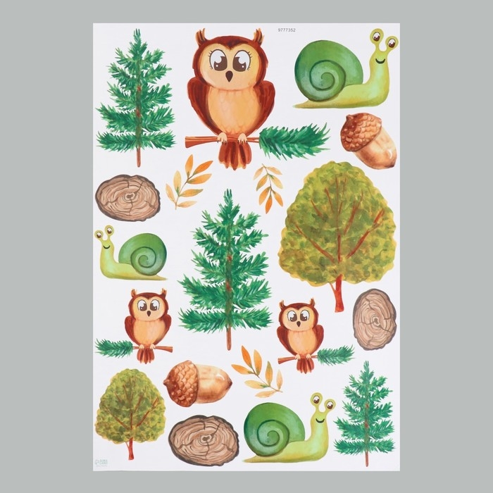 Наклейка интерьерная цветная "Филин в лесу" 50х70 см