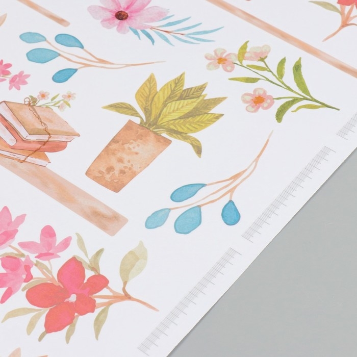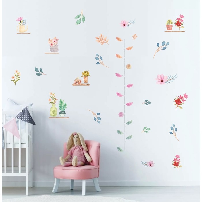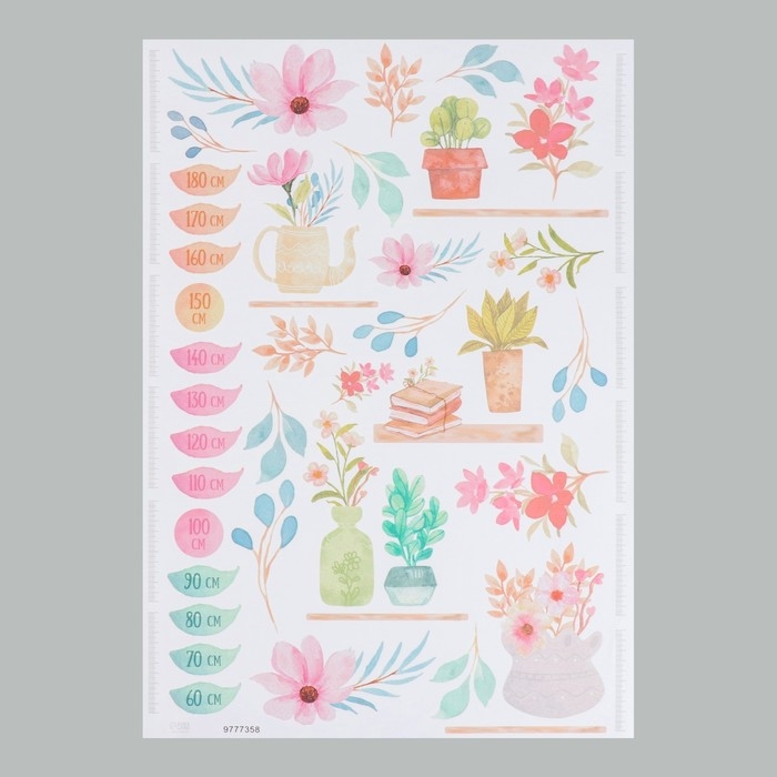 Наклейка интерьерная цветная ростомер "Цветы в горшочках" 50х70 см