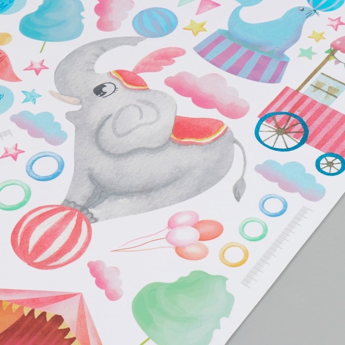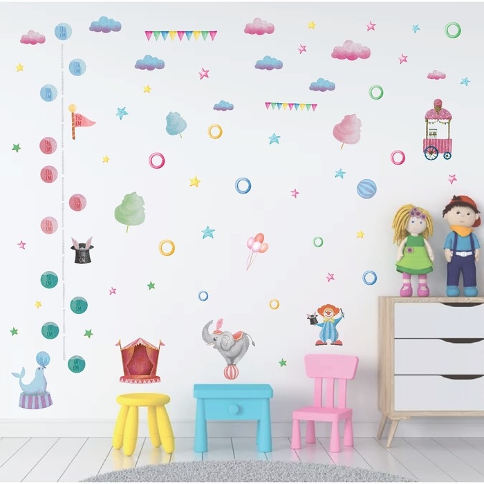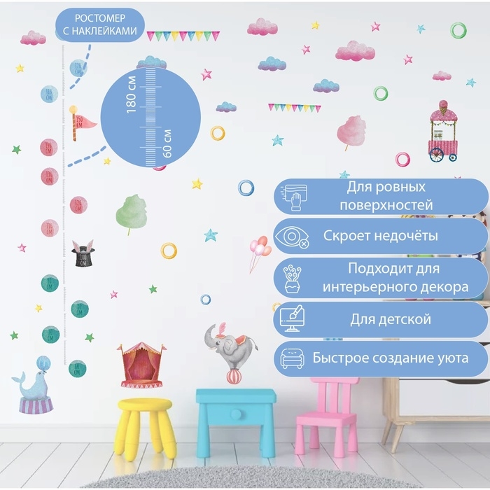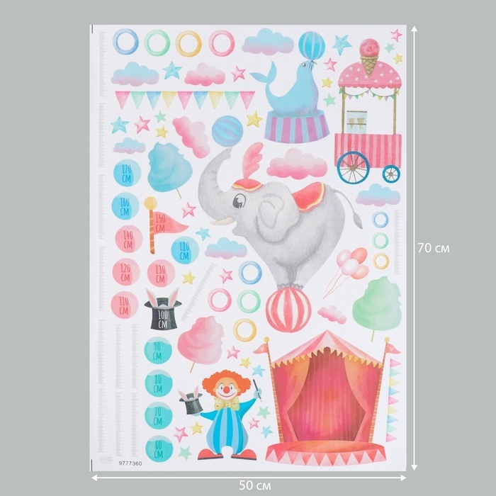 Наклейка интерьерная цветная ростомер "Представление в цирке" 50х70 см