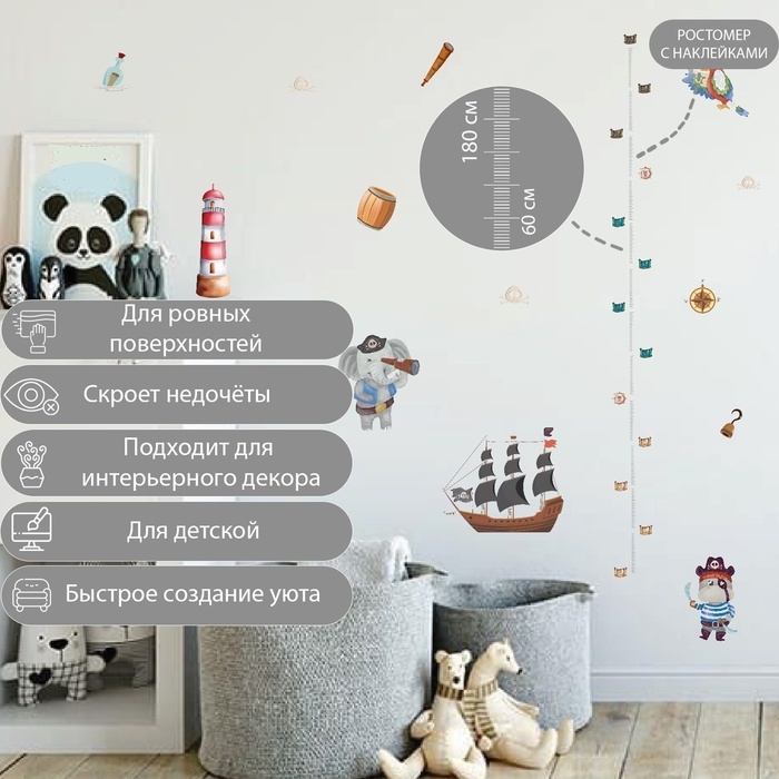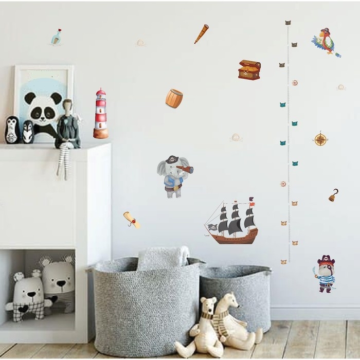 Наклейка интерьерная цветная ростомер "Пиратский корабль" 50х70 см