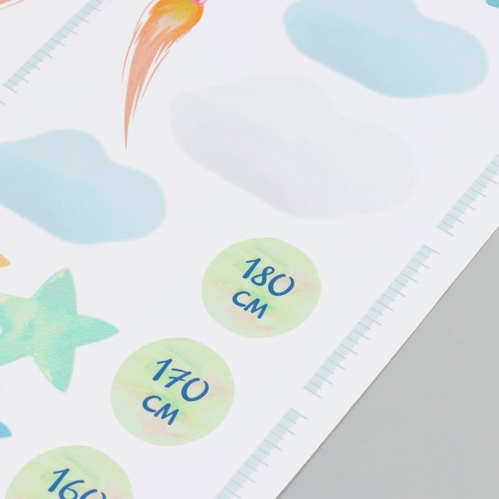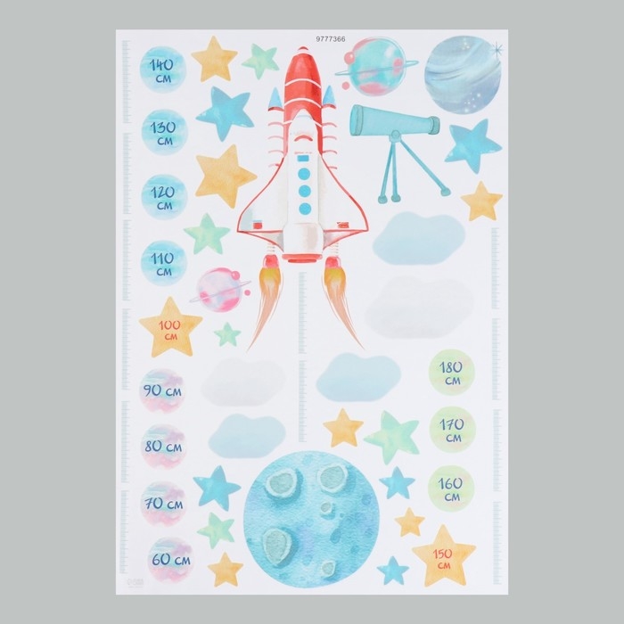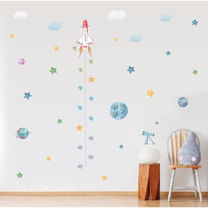 Наклейка интерьерная цветная ростомер "Запуск ракеты" 50х70 см