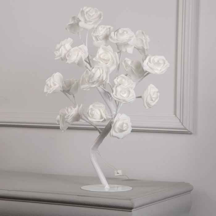 Светодиодный куст «Розы белые» 45 см, 24 LED, постоянное свечение, 220 В, свечение тёплое белое
