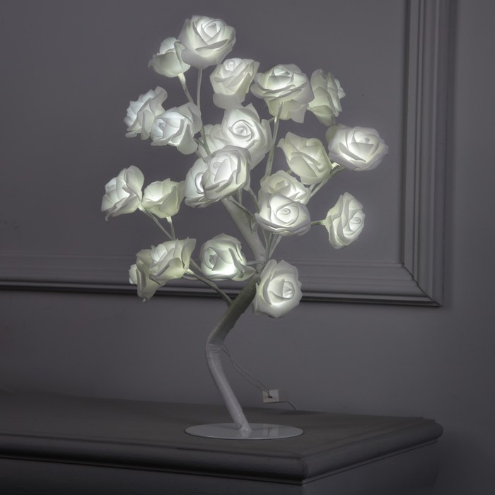 Светодиодный куст с белыми розами - отличный вариант подарка человеку с безупречным вкусом. Устройство работает от сети.