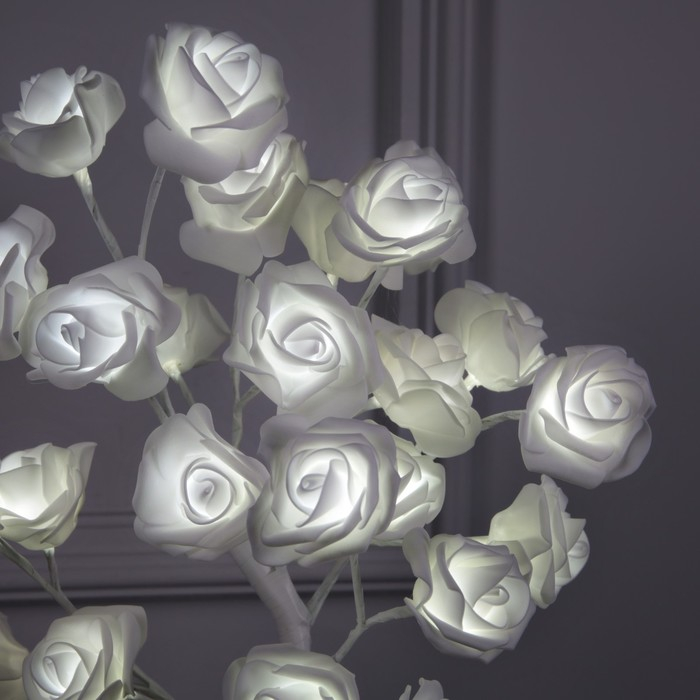 Светодиодный куст «Розы белые» 45 см, 24 LED, постоянное свечение, 220 В, свечение белое
