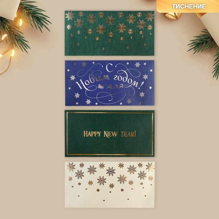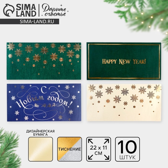 Конверт для денег, набор 10 штук, «С Новым годом», тиснение, 22 х 11 см, Новый год