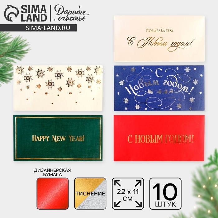 Набор подарочных конвертов «С Новым годом», 10 штук, тиснение, 22 х 11 см, Новый год