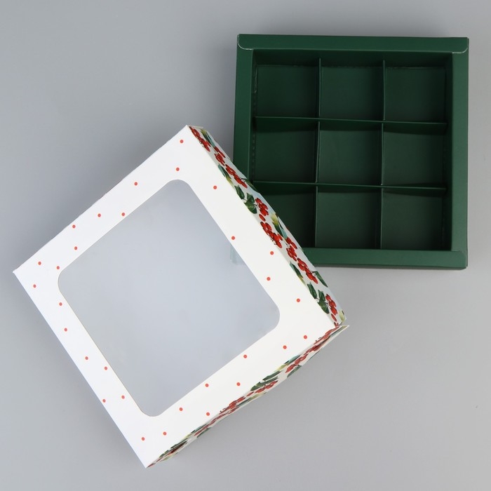 Коробка для 8 конфет + шоколад, с окном "Презент", 17,7 х 17,8 х 3,8 см. Кондитерская упаковка