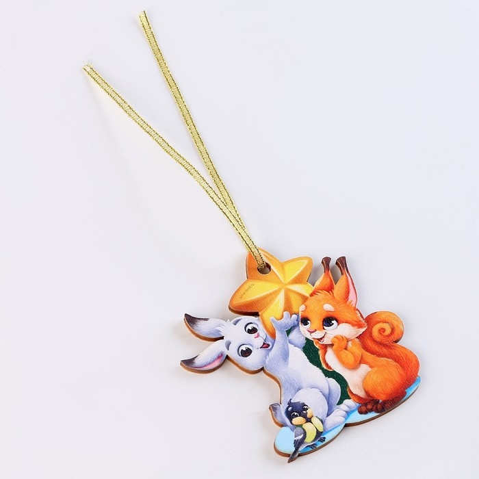 Ёлочная игрушка - подвеска деревянная «Новый год! Зверята»