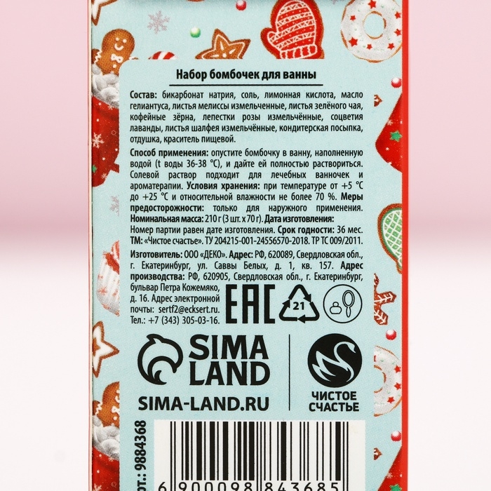 Подарочный набор косметики «Яркого года!», бомбочки для ванны с добавками, 3 х 70 г, Новый Год