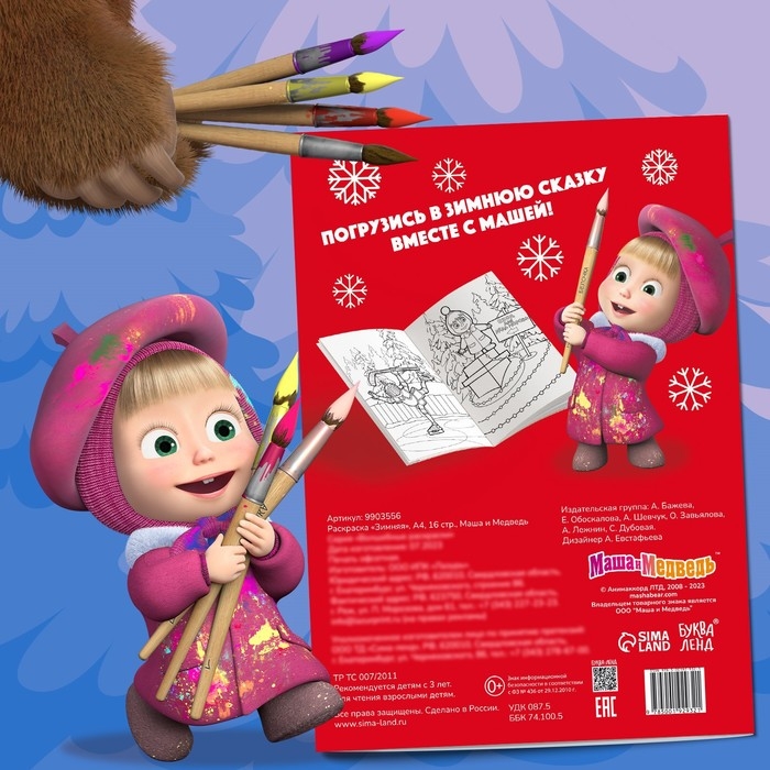 Новый год! Раскраска «Зимняя», А4, 16 стр., Маша и Медведь