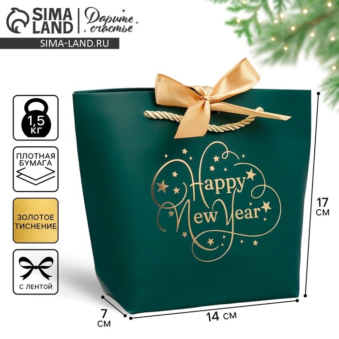 Пакет подарочный новогодний «Счастье в Новом Году», 14 х 17 х 7 см, Новый год