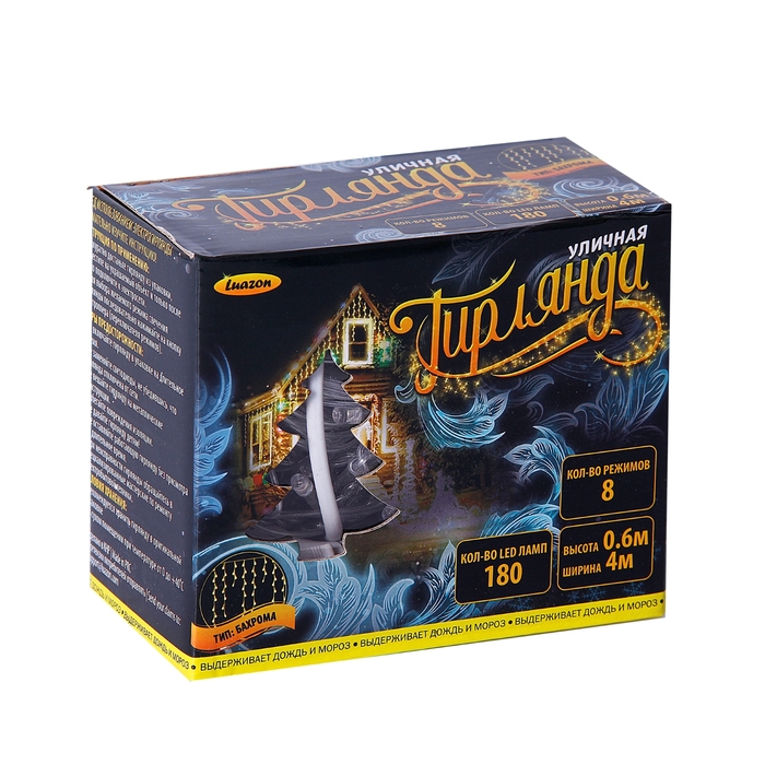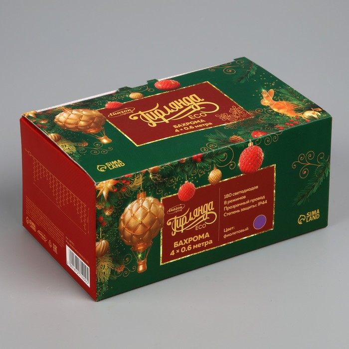 Гирлянда «Бахрома» 4 × 0.6 м, IP44, прозрачная нить, 180 LED, свечение фиолетовое, 8 режимов, 220 В