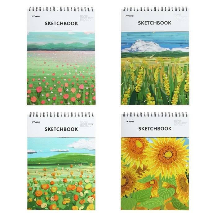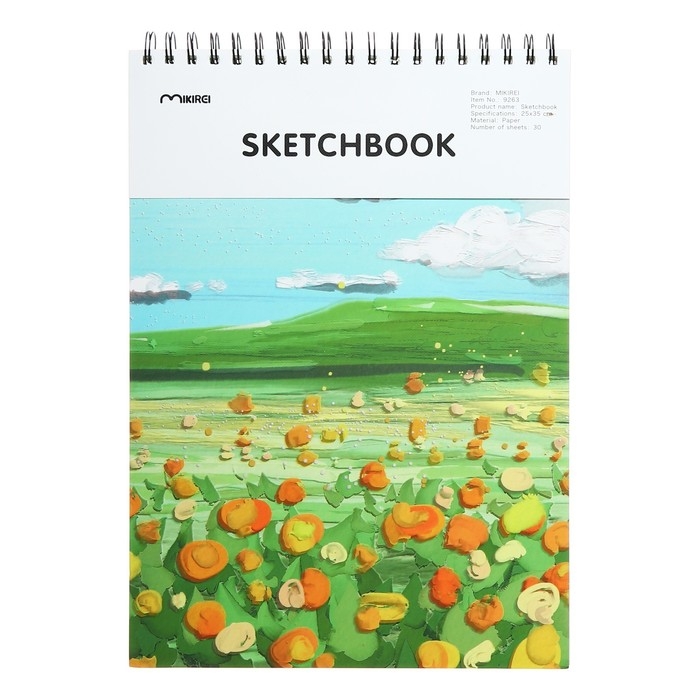 Скетчбук для пастели "Поля", 30 листов, 25 х 35 см, жетская обложка, 130 г/м2, МИКС