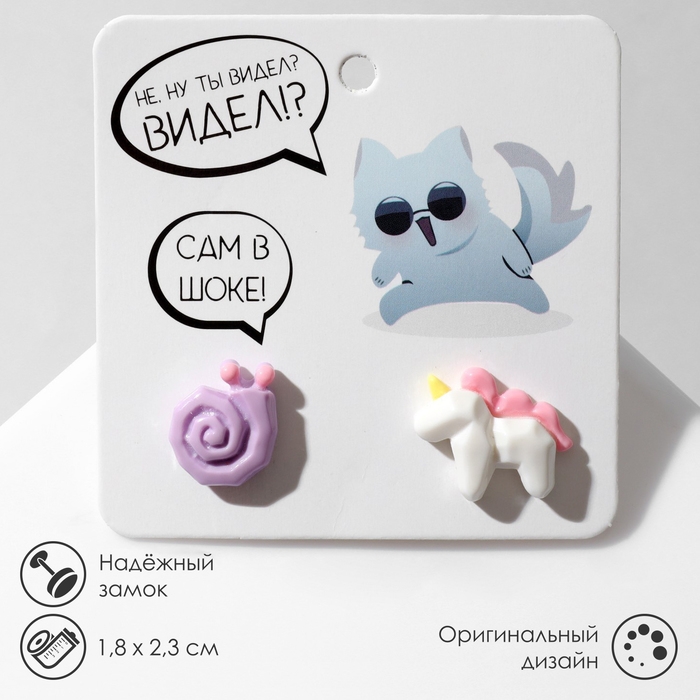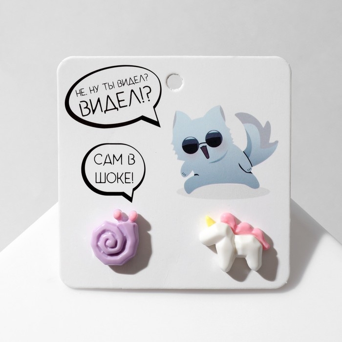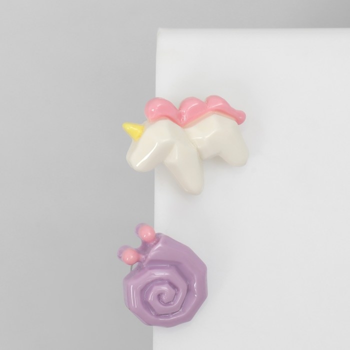 Серьги пластик «Абстракция» единорог и улитка, цветные