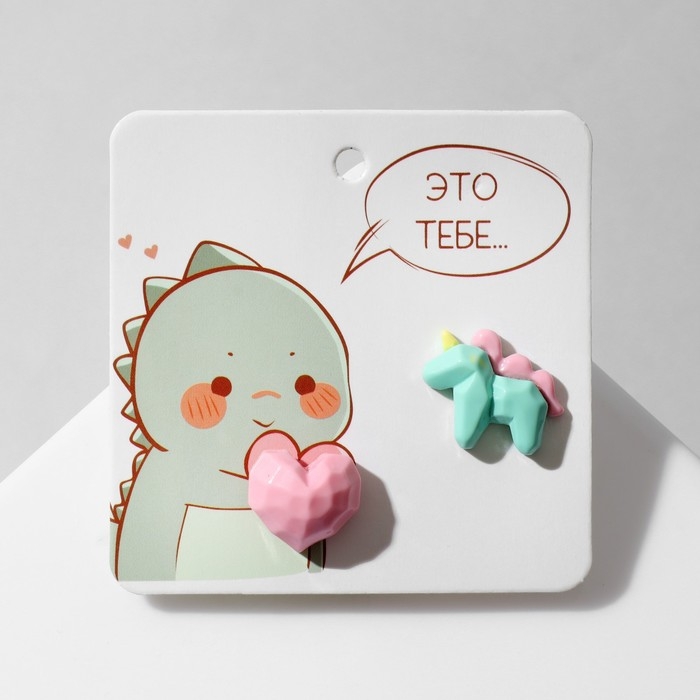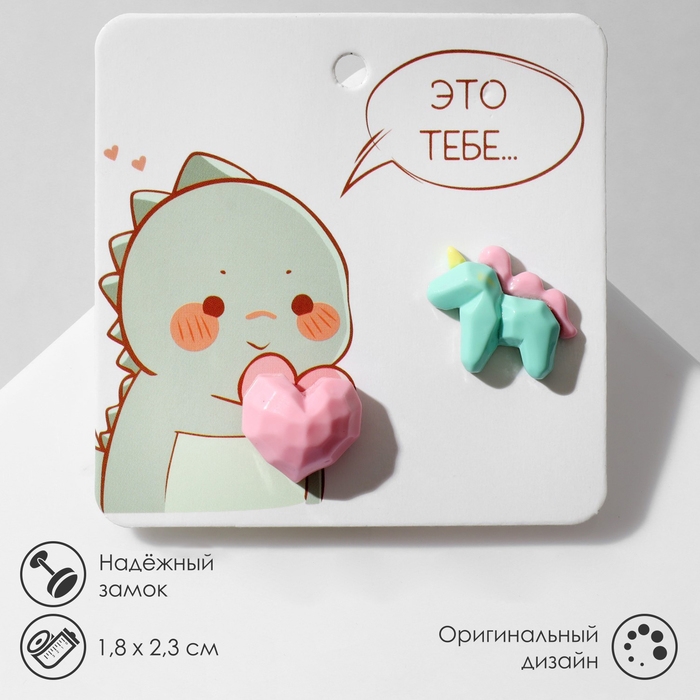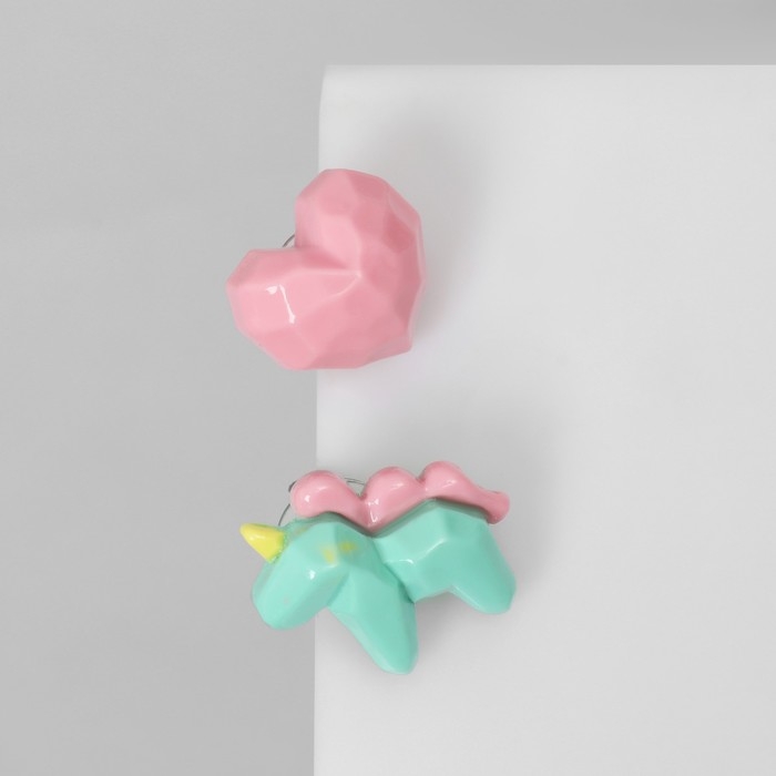 Серьги пластик «Абстракция» единорог и сердце, цветные