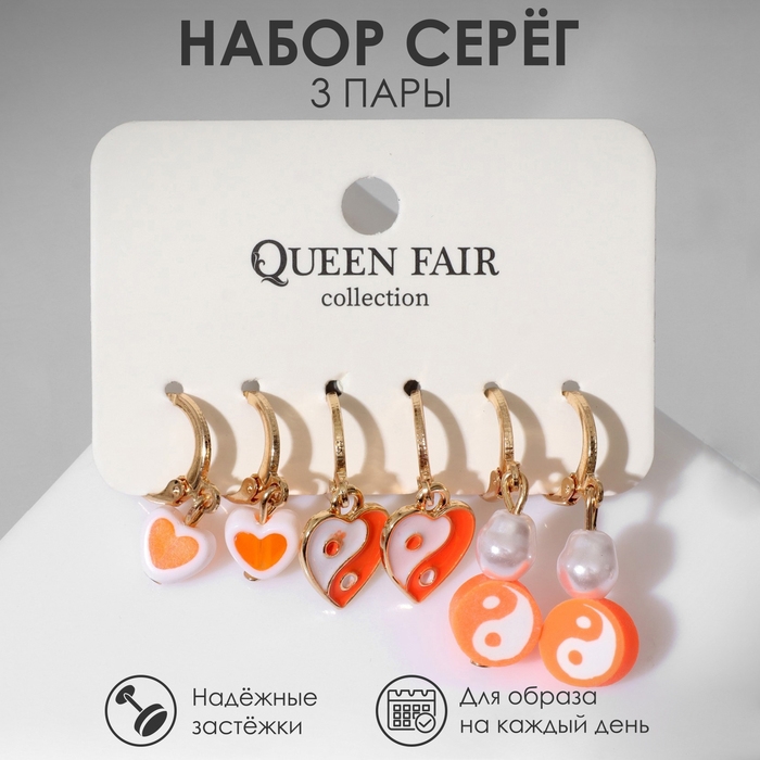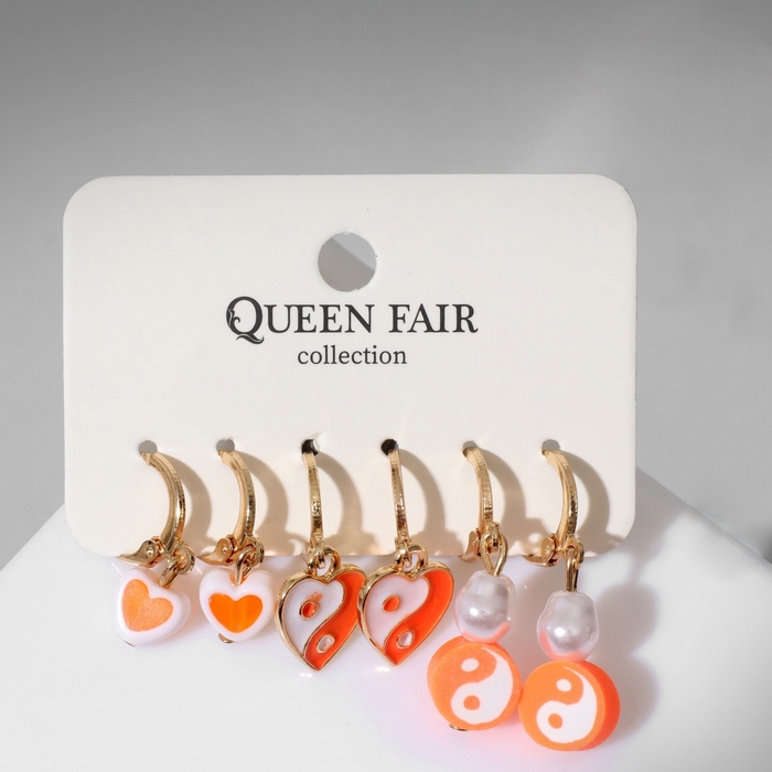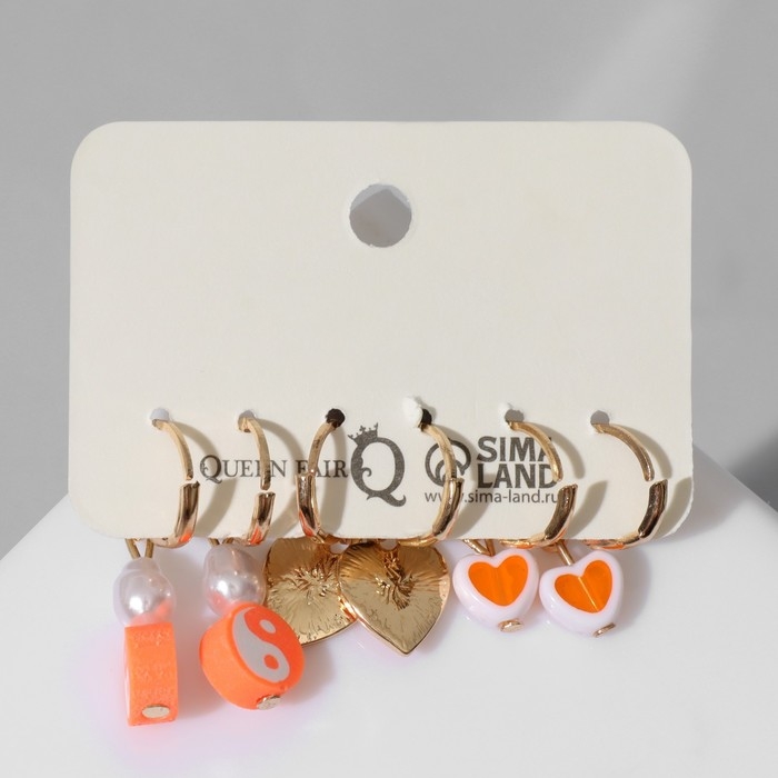 Набор серьги 3 пары «Тинейдж», цвет бело-оранжевый в золоте