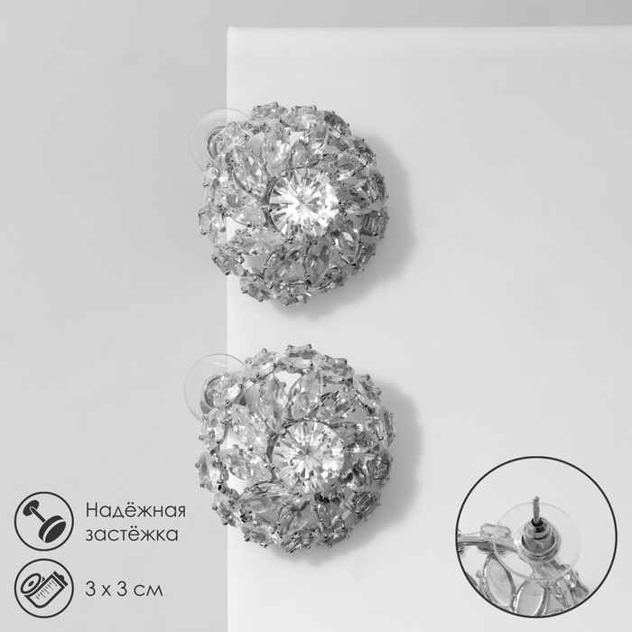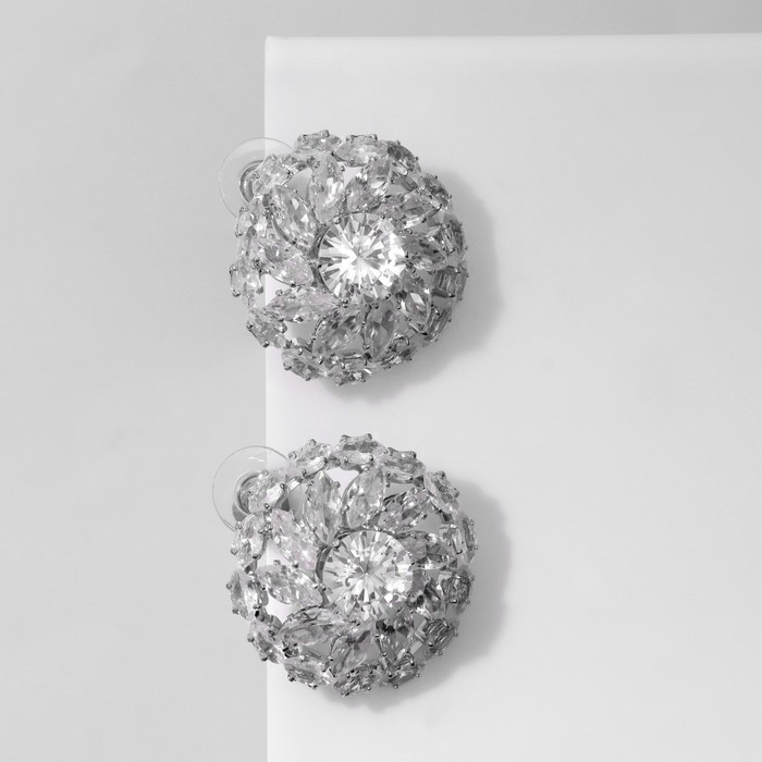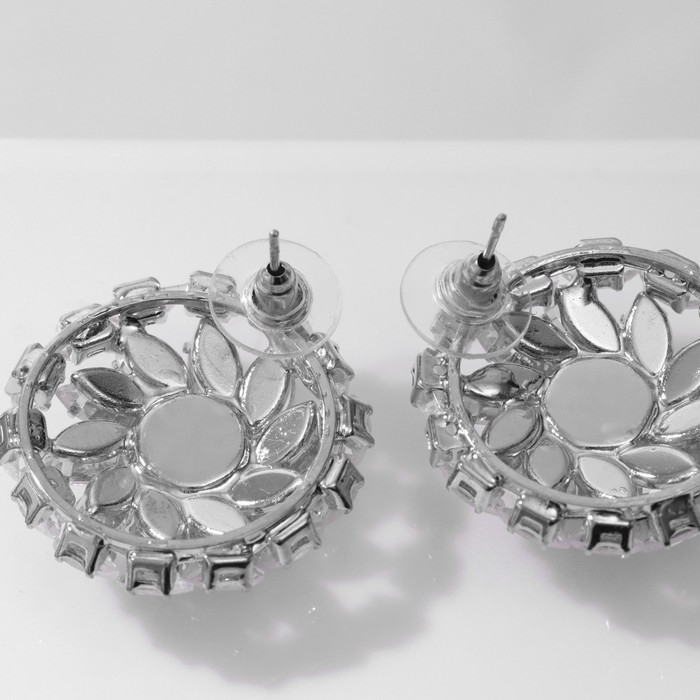 Серьги со стразами «Вспышка» цветочная, цвет белый в серебре