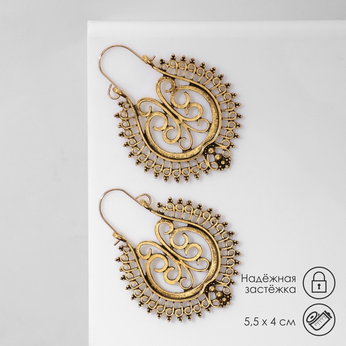 Серьги металл «Восток» узор в капле, цвет чернёное золото