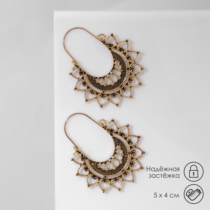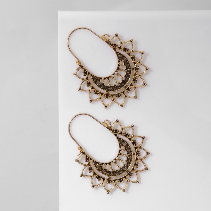 Серьги металл «Восток» солнце, цвет чернёное золото